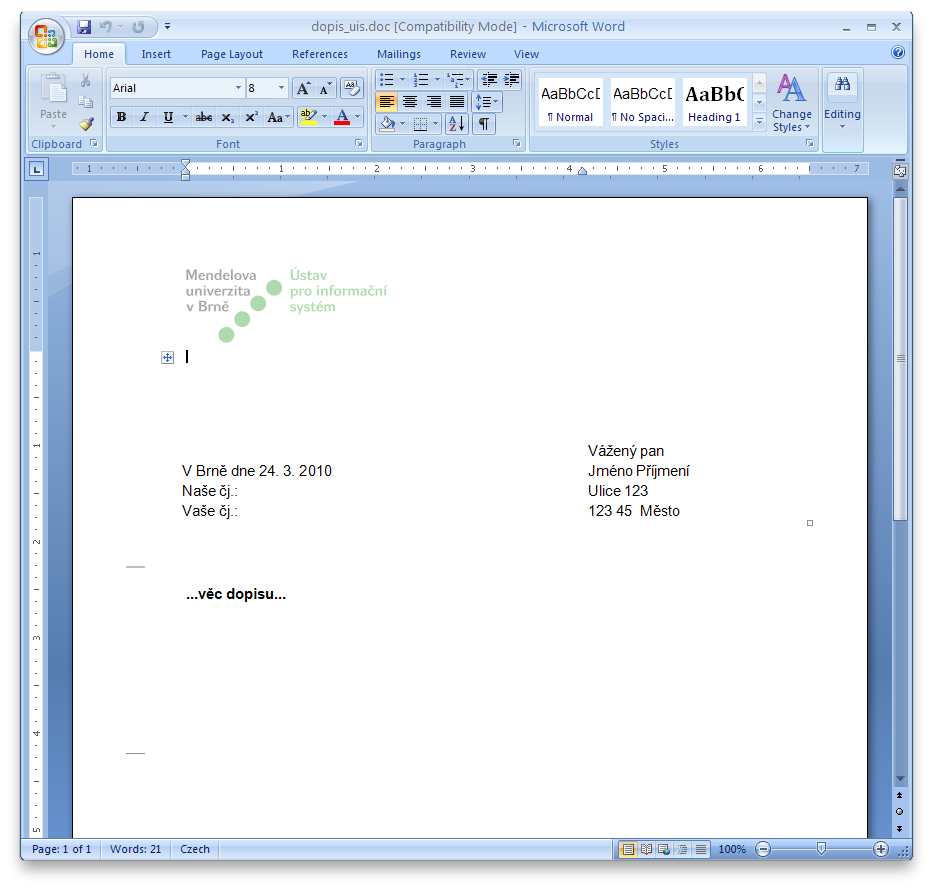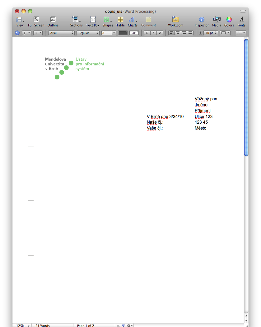 - Ve wordu 2008 pro Mac se nezobrazi část textu v němž je uveden příjemce.